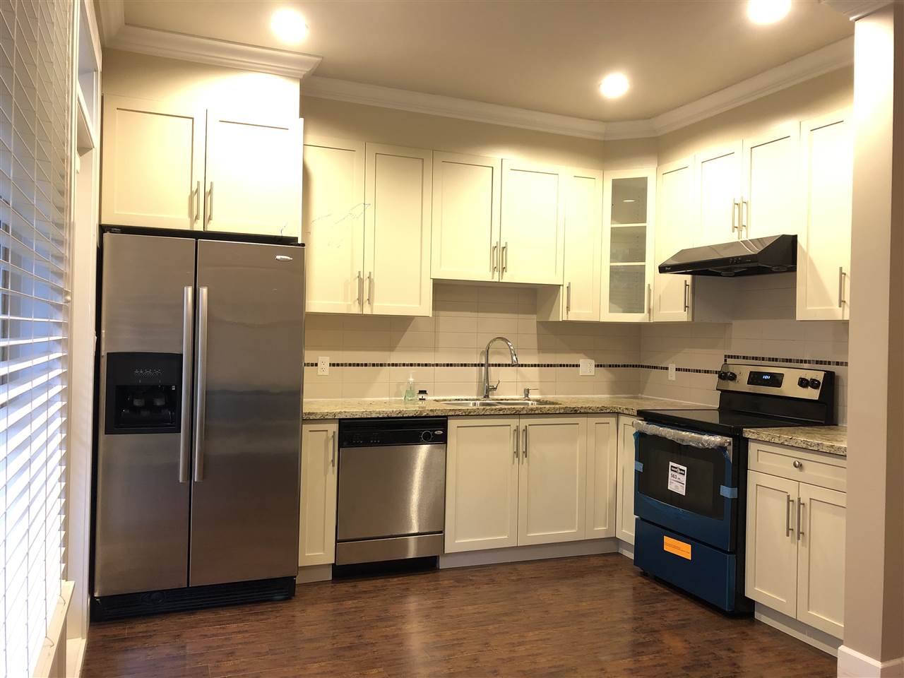 3 bedrooms, 2.5 bathrooms “like-new” Townhouse in great central location. Large living room, dining room and gourmet kitchen located on main floor. Kitchen features dark laminate flooring, stainless steel appliances and granite countertops. Great back patio. Crown mouldings and baseboards throughout unit. Top floor includes large master bedroom with ensuite bathroom and walk-in closet as well as 2 other large bedrooms. Spacious tandem garage with lots of extra storage. Great family complex with children’s play area and multi use recreational centre. Conveniently located near both levels of schools, park, bus, transit, shopping. Easy access to HWY 91, HWY 99 and Richmond and much more!