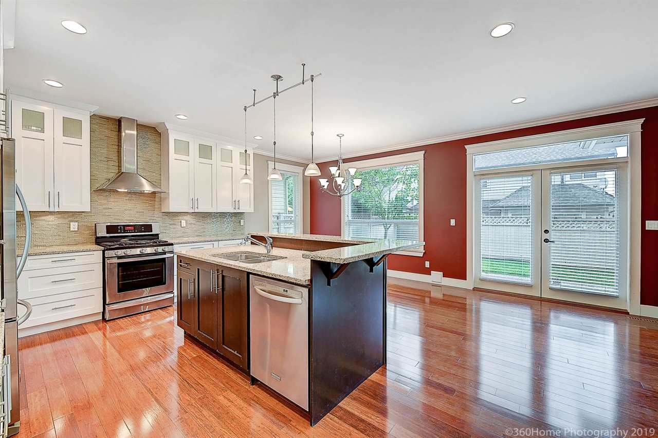 Quality custom built home in prestigious Morgan Heights. Gracious & open layout – 5 bedrooms & 4.5 bathrooms. 10 feet ceiling with crown moldings & high quality hardwood floor on main. Gourmet kitchen features contemporary & tasteful cabinet with granite counter-tops, island, good-sized pantry & top of the line stainless appliances. Widen stairways, elegant family room arch design. Incredible master’s bedroom with vaulted ceiling & 5-piece designer ensuite. Basement offers a huge media/entertaining area with wet bar & 5th bedroom & full bath. Private patio & backyard. Located on quiet cul-de-sac.Near Southridge private School & Morgan Crossing shopping centre, aquatic centre, all stores, quick access to White Rock & Hwy to Vancouver.